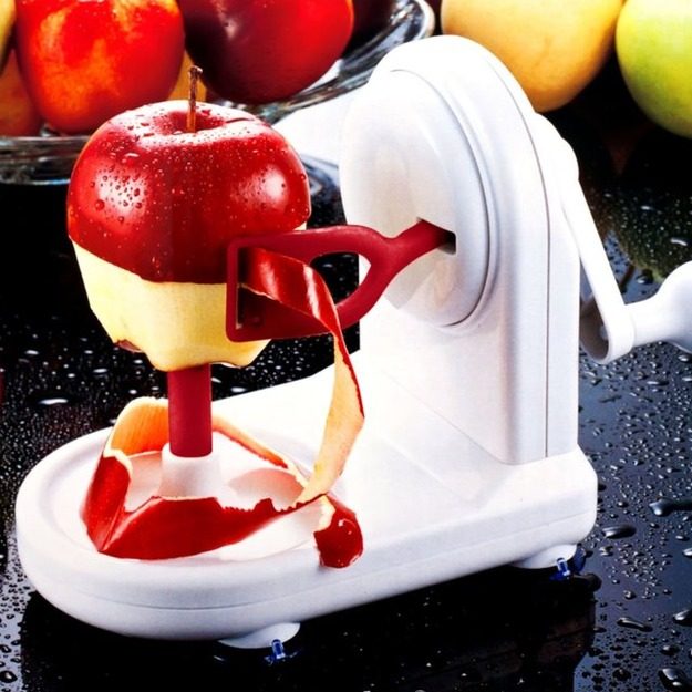 Любите есть яблоки без кожуры или собираетесь что-то приготовить? Больше не нужно мучиться и тратить время на очистку яблок. Следующий гаджет поможет сделать это в считанные секунды. Яблоко почистится равномерно и действительно быстро.