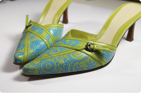 Автор работы расписала босоножки акриловыми красками. Обращаю ваше внимание, что перед росписью кожаную обувь обязательно нужно помыть, обезжирить и высушить.