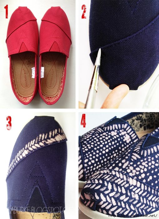 Очень интересный вариант, автор расписала свои тапки обычным отбеливателем: