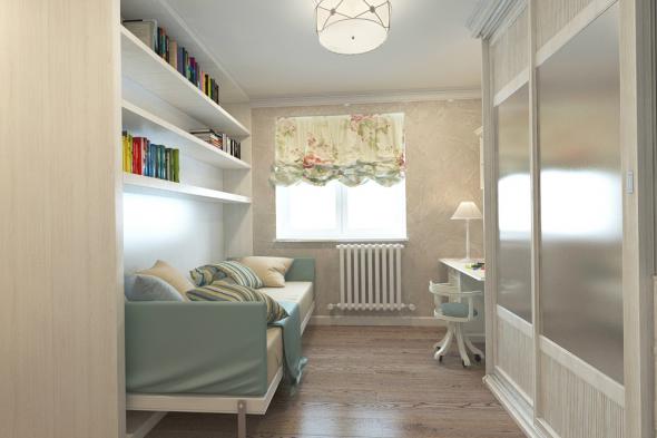 Московские дизайнеры создали проект обустройства небольшой комнаты (16 кв. м), в которой ютится семья с ребенком.