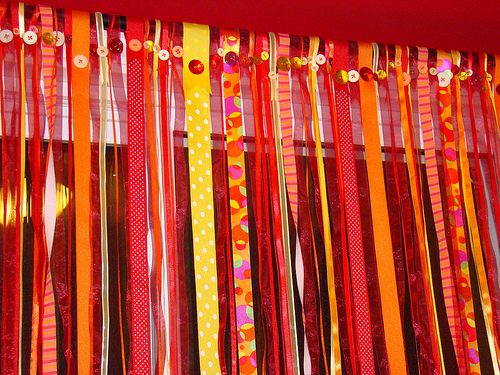 Предлагаю вам смастерить красивый занавес — штору из лент для двери или окна.