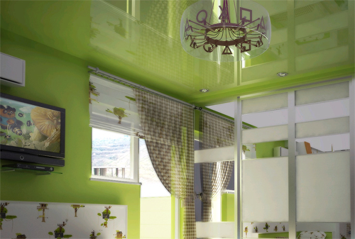 Зачем зеленый потолок… А если захочешь цветовое решение комнаты поменять — все перетягивать?
