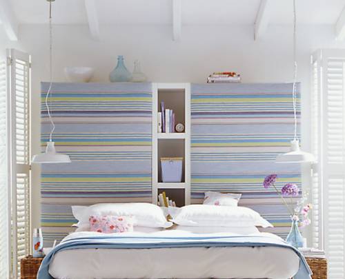 Дубляж в интерьере — одно из правил хорошего дизайна. Старайтесь формы и материалы хоть однажды повторять в пределах одной комнаты. Скажем, светлыйлинолеум продублируйте в натуральном буке при выборе материала кровати. А кованый элемент кровати повторите при выборе фурнитуры для ручек туалетного столика. Вставку на обоях можно повторить при выборе теснения для зеркала в шкафе-купе.