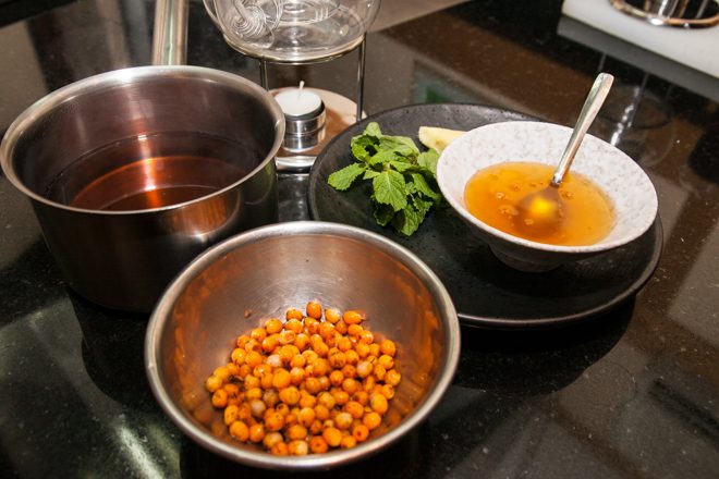 3) Теперь добавляем мед. Даем всей массе покипеть минут 3-5. После этого добавляем мятные листики, держим их в воде 20 секунд. И ву аля, наш антипростудный чай готов! Подавать напиток лучше процеженным через ситечко в красивом чайнике с хорошим настроением и пить вместе с близкими людьми под теплым пледом.