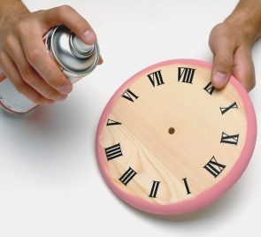 После того, как краска высохнет, наносим клей на всю поверхность часов. Можно воспользоваться специальным распыляющимся клеем.