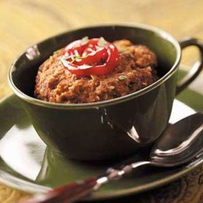 В чашку, сбрызнутую кулинарным спреем или слегка смазанную маслом, положите мясной шарик, запекайте в микроволновке 3 минуты на высокой мощности. Подавайте с соусом или маринованными овощами. И да, для тефтелей можно использовать любимый рецепт рубленых котлеток.