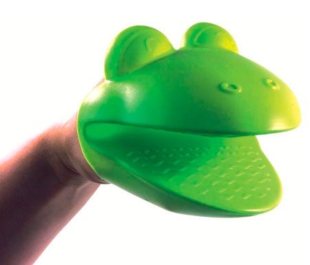 То, что выглядит как голова марионетки, на самом деле – прихватка для горячего. В отличие от привычных варежек не требует долгого надевания, не пропускает жара и достаточно тонка, чтобы чувствовать фактуру взятого предмета. Одна опасность: дети заиграют.
