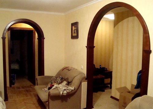 Арка из массива дерева, оригинальной формы или нестандартных габаритов (стрельчатая, полукруглая с одной прямой стойкой, 1,5 — 3 метра шириной) обойдется дороже; такие арки обычно изготавливают на заказ. Межкомнатные арки из дерева хорошо сочетаются с интерьерами в классическом стиле (особенно арки-порталы, с резными или фрезерованными накладками, пилястрами и капителями), а также со стилем «кантри». В качестве замены деревянной арке можно использовать арку из полиуретана, которая собирается из нескольких молдингов и довольно легко устанавливается своими руками.