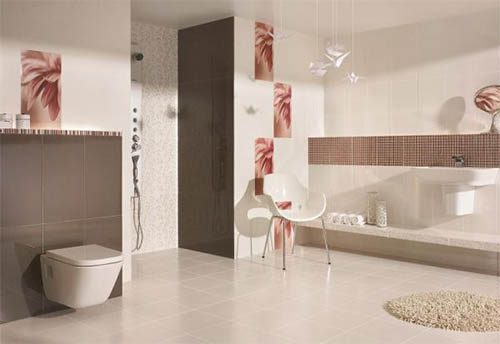 Красный в дамской ванной комнате можно использовать лишь в виде добавок и различных украшений, так как его избыток моет вызвать у нас тревогу, а затем усталость. Однако его мягкие оттенки будут стимулировать нас к жизни и немного согревать, особенно если остальные элементы и сантехника будет белого цвета.