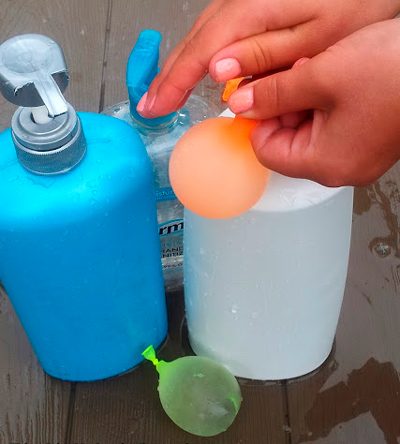 Для того, чтобы использовать эту идею, придется подождать летней жары, но зато потом она вам пригодится. Если дети на даче затеяли кидание водяных бомбочек в цель, они оккупируют кухню и зальют ванную водой. Предотвратить безобразие можно, выдав им несколько помпоповых диспенсеров из-под жидкого мыла или шампуня, отмытых и наполненных водой.