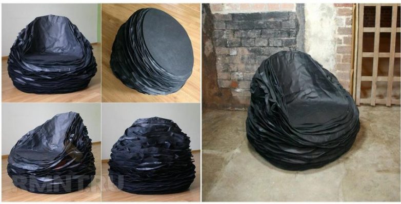 Черное кресло от студии «Кибардин Дизайн» создано из 37 слоев тонированной бумаги и 20 картонных деталей. Контуры мягкой мебели напоминают очертания фантастического цветка, которые можно видоизменять, сминая края бумаги, задавать произвольную форму и высоту.