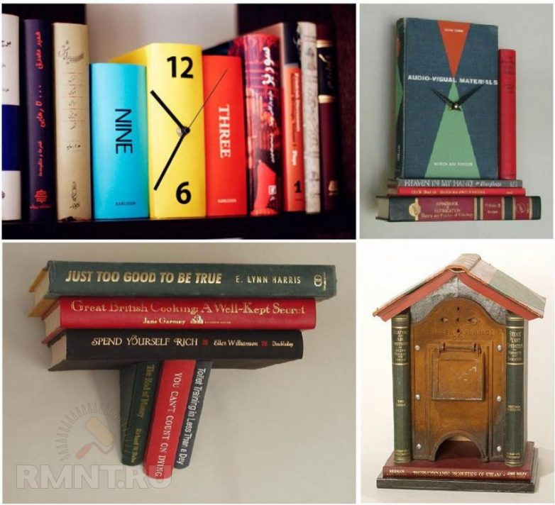 Полки и кронштейны, необычные домики для животных, циферблаты часов — все эти разнообразные аксессуары для оформления интерьера достаточно просто сделать из старых, отживших свой век книг.