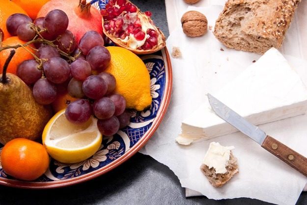 Чем же наполнить эти 5–6 порций? Ориентируйтесь на свой аппетит и фантазию, а также на схематичное меню: в качестве завтрака каша из цельных круп, хлопья или мюсли, чуть позже — порция йогурта, фрукты, чашка зеленого или травяного чая, обедаем горячим супом и хлебом с отрубями, на полдник — смесь орешков и сухофруктов, кисломолочный продукт по вкусу, на ужин выбираем запеченную рыбу, мясо, и завершаем день стаканом ряженки или молока с медом.