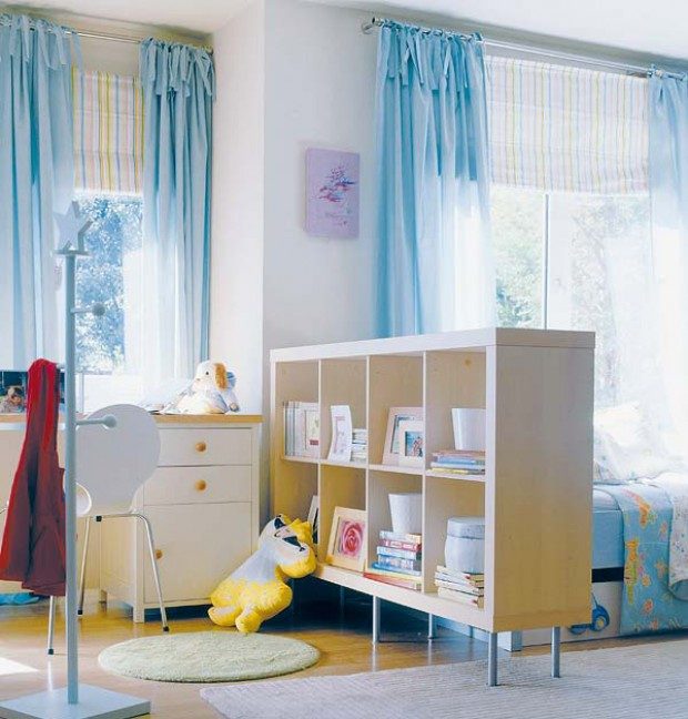 А вот в детской комнате стеллаж-перегородка может быть очень полезным! Отделите с его помощью небольшой уголок для письменного стола, чтобы ребенок мог сконцентрироваться на уроках и не отвлекался от учебы, рассматривая игрушки в игровой зоне.