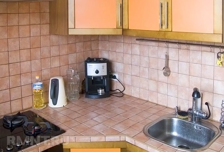 Богатый выбор размеров, форм, цветов и рисунков. Практически неограниченный простор для фантазии дизайнера. Не боится жара, пятен и царапин. При этом, даже если одна плитка треснула, менять всю столешницу не придется, заменить ее достаточно легко. Стоит сравнительно недорого — от 10 до 80 долларов за квадратный метр, в зависимости от вида и производителя.