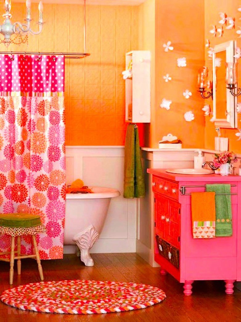 Если вы считаете, что ванная комната должна оформляться в однотонных спокойных тонах, я этой фотоподборкой попытаюсь вас переубедить. Посмотрите, какими яркими и жизнерадостными могут быть эти небольшие помещения! Экспериментируйте, пробуйте и творите.