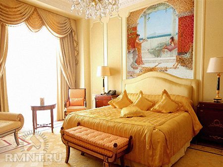 Если отделка потолка и пола достаточно консервативна и должна подчиняться особенностям расположения этих поверхностей и функциональным задачам, то стены действительно позволяют творить буквально что угодно — от разукрашивания абстрактными рисунками до богатой отделки парчой или натуральным камнем.