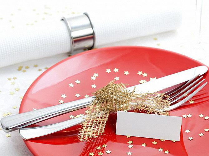 И снова классические цвета рождественского праздничного стола — красный и золотой.