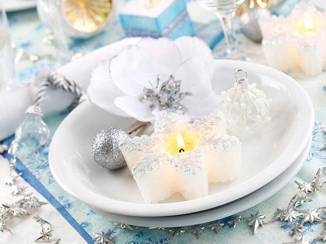 Самое главное в праздничной сервировке — это, конечно же, свечи и другие эффектные мелочи. Для украшения новогоднего стола отлично подойдут ёлочные игрушки.
