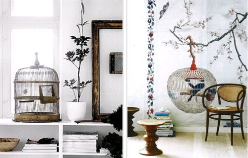 Клетки для птиц сегодня легко найти в любом зоомагазине, но, пожалуй, лучшим вариантом будет отправиться с друзьями на блошиный рынок, где Вы можете присмотреть, например, старинный вариант. Такая клетка добавит шарма в интерьер классической гостиной, сделав её единственной и неповторимой. В этом случае использовать клетку для птиц в качестве украшения можно по-разному. Хорошей идеей будет разместить свечи или лампы внутрь клетки, тем самым создав оригинальный светильник или фонарь. Его можно будет повесить над столом, в качестве основного источника света, или же поставить на журнальный столик или комод, в качестве ночника.