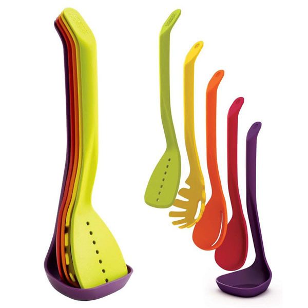 В этот многофункциональный набор кухонных принадлежностей Nest входит пять предметов. В ручки встроены магниты, которые удерживают все предметы вместе, поэтому вам не придется искать их по всей кухне. Яркие цвета поднимут настроение и добавят удовольствия к процессу приготовления пищи.