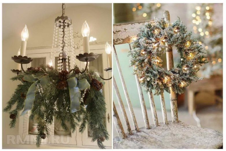 Отсутствие ярких красок, голубоватые оттенки елочных игрушек и декора создают в доме атмосферу легкости, прозрачной воздушности. Шары, ленты и свечи цвета морской волны подчеркнут утонченность обстановки в стиле винтаж и шебби шик, гармонируя с сизоватой хвоей новогодней елки.