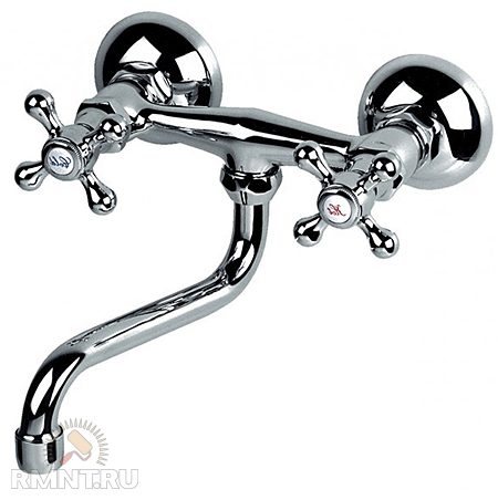 Такие настенные смесители с двумя вентилями уже давно стали признанной классикой и частенько встречаются в «хрущевках», где ремонт делался как минимум десять лет назад. Эта модель KFA Armatura Retro польского производства стоит всего около двух тысяч рублей.