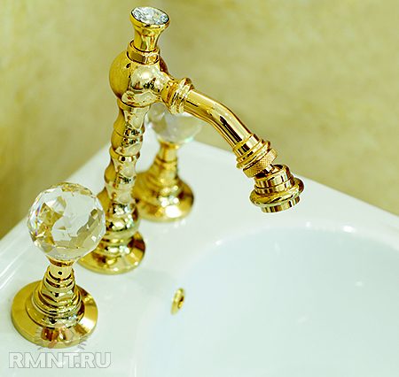 Кстати, двухвентильные смесители, которые мы отнесли к ретро стилю, сегодня буквально обретают второе дыхание и снова становятся популярны. Производители делают акцент не на техническую сторону и излив, а на дизайн смесителя и ручек управления, создавая их в виде крестика, конуса, треугольника, цилиндра и так далее. Такие стильные ручки управления могут быть изготовлены из хрусталя, золота, серебра, дерева и даже драгоценных металлов. Понятно, что такая роскошь, которая идеально подходит для ванной комнаты в стиле барокко, будет стоить просто баснословных денег и по карману единицам.