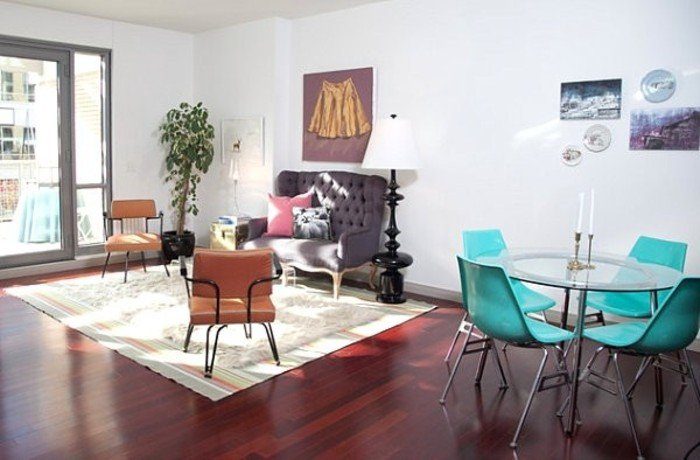Если вы не хотите использовать бирюзовый в качестве основного цвета стен, можно сделать акцент на мебели. Беспроигрышной идеей станет комната в сдержанных строгих тонах с одним ярким акцентом.