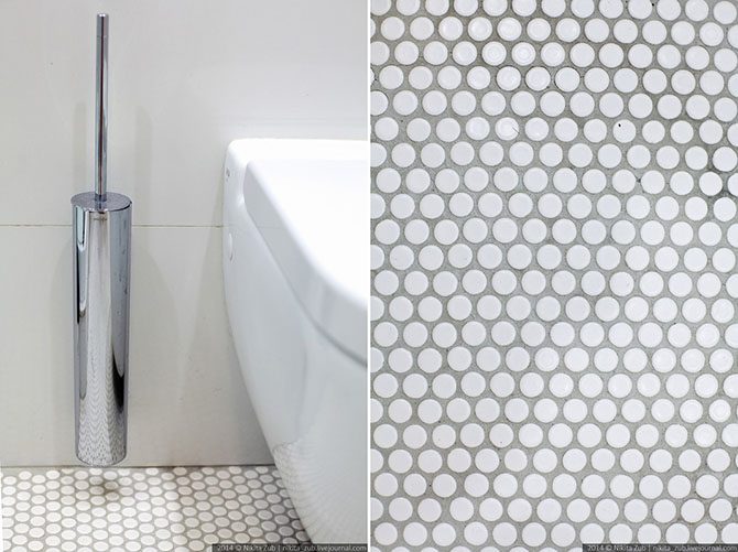 На полу белая мозаика.