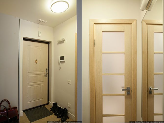 Квартира для молодой женщины, которая собирается прожить здесь не более пяти лет. Начав делать планировку, Никита прежде всего определил место для вместительного гардероба, наличие которого было остро необходимым в этой квартире. Хозяйка до этого жила на нескольких съемных квартирах, где самой большой проблемой было хранение большого количества вещей (теперь даже еще место свободное есть).