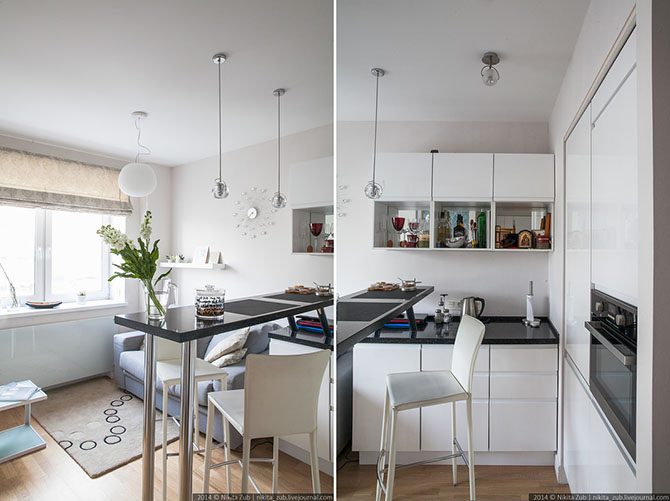 Стол заказчице был не нужен – только барная стойка с удобными высокими стульями.=======Я сомневаюсь в удобстве барной стойки как таковой, и тем более высоких стульев! Сидишь там как петух на насесте!