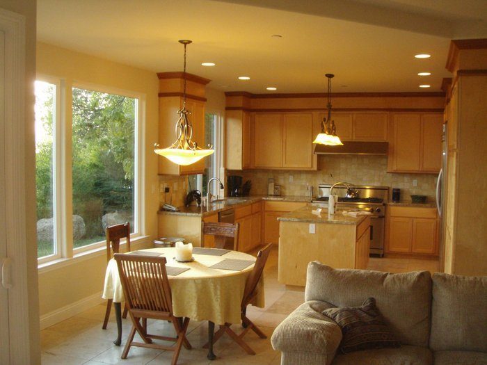 Иногда кухня из массива дерева кажется довольно простой. Помещения, отделанные деревом, априори воспринимаются как уютные. Но для кухни этого недостаточно — очень важно правильно подобрать краску и освещение, чтобы дерево заиграло по-домашнему. Как результат, атмосфера на такой кухне будет вдвойне уютной, а блюда, приготовленные здесь, — более вкусными.