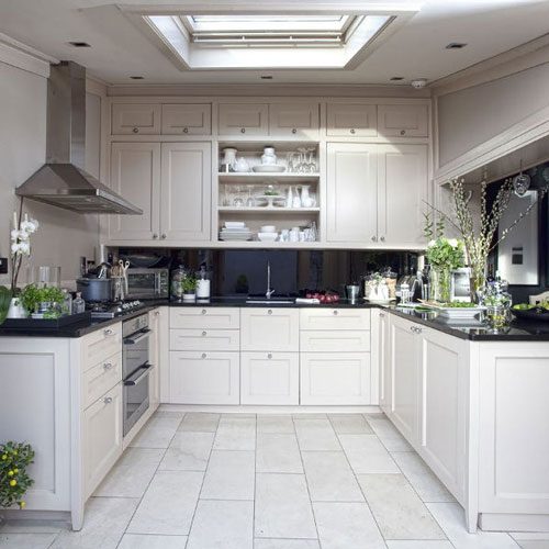 Достаточно распространенным можно назвать и П-образную организацию рабочего пространства, особенно если место позволяет использовать такой элемент, как кухонный остров. С одной стороны, наличие посредине кухни стола, уменьшает полезную площадь, но с другой стороны, за счет его функциональности экономится место у стен.