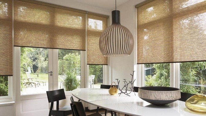 Горизонтальные деревянные жалюзи прекрасно впишутся в интерьер кабинета, библиотеки или гостиной. Они — признак отменного вкуса, состоятельности и престижа. Бамбуковые жалюзи эффектно выглядят и эффективно защищают от солнца. Каждая их планка покрыта специальным защитным лаком, предохраняющим от разрушительного воздействия солнечных лучей. В отличие от дерева бамбук равнодушен к воде. Также есть жалюзи, сочетающие несколько материалов. Их называют мультифактурными. Ткань, пластик, стекло и декоративные элементы создают оригинальные и запоминающиеся композиции. В соответствующем исполнении подходят для любых комнат. Конструкции из холстов Отличие жалюзи от привычных штор — в их особой технологичности. Поэтому уместно будет сказать здесь о различных конструкциях, которые хоть и не состоят из ламелей, но по духу ближе к жалюзи, чем к шторам. Простота и элегантность рулонных штор привлекает многих. Ткань рулонных штор, как правило, пропитана пылеотталкивающим составом. Они уместны везде, так как бывают разного цвета и плотности. Римские шторы можно сравнить с удачным симбиозом вертикальных тканевых жалюзи и рулонных штор. Их конструкция состоит из широкого полотна с утяжелителем по нижнему краю, направляющих и регулировочного шнура. В развернутом виде это ровный холст, на который можно нанести любой рисунок. В сложенном состоянии — аккуратная гармошка. Подходят практически для любых комнат за исключением кухни.