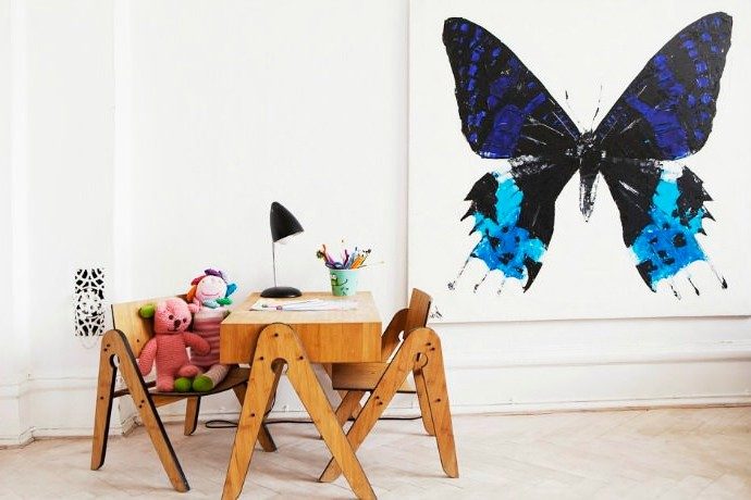 Одна крупная бабочка, будь то картина, фото или рисунок на стене, неизменно придает помещению стильность. Если бабочка яркая, то интерьер становится жизнерадостным.