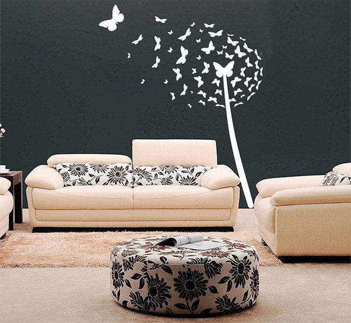 Другой, тоже замечательный вариант оформления комнаты бабочками – специализированные наклейки или роспись. По сути, с их помощью в интерьере можно достигать самых разных эффектов, от расстановки акцентов до полного преображения всего помещения.