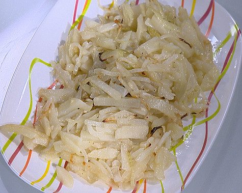 Картофель тонко нарезать или натереть и выложить на противень. Сбрызнуть картошку растительным маслом, посолить, поперчить и поставить в духовку, разогретую до двухсот градусов, на пять минут. Затем посыпать картофель луком, предварительно замоченным в воде, и ещё минут десять запекать блюдо. Последний штрих – выложить поверх лука тёртый сыр и еще пару минут подержать картошку в духовке.