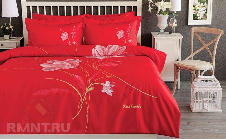Яркое, желательно красное постельное белье, возможно, украшенное цветами и сердечками, как нельзя лучше подходит именно для продолжения романтического ужина в День святого Валентина.