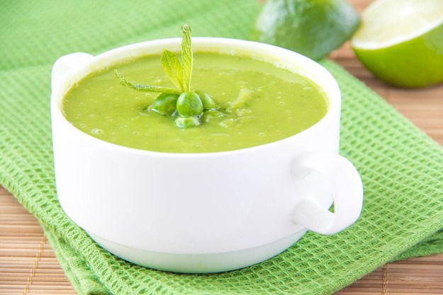 Мятный крем-суп с горошком и кукурузой