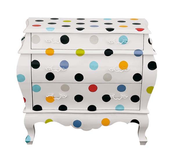 Стильно и актуально гороховый принт выглядит и на корпусной мебели. Различные оттенки кружков и размеры создают неповторимый образ интерьера любой комнаты дома.