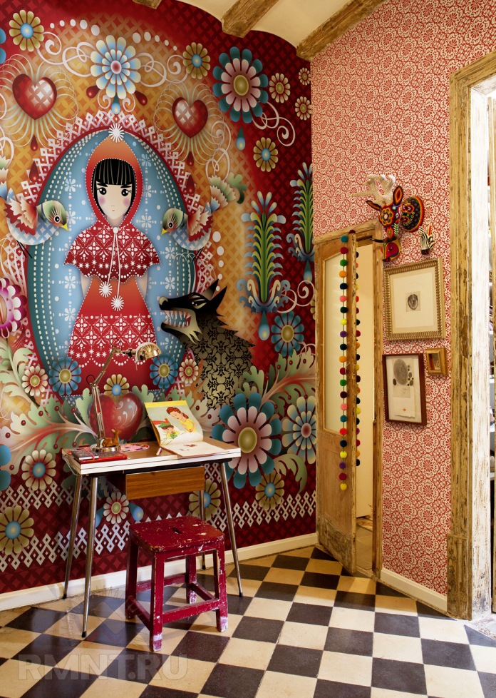 Пример постоянно изменяющегося, «живого» интерьера. Достаточно выкрасить стены грифельной краской, и вы сможете менять декор из картинок и надписей буквально каждые пять минут.