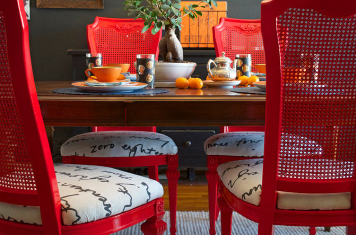 Еще один вариант ненавязчивого «буквенного» декора — нанесение знаков на текстиль. Рукодельницы могут вышить надпись собственными руками, остальным лучше обратиться к профессионалам. В любом случае результат будет индивидуальным и стильным.