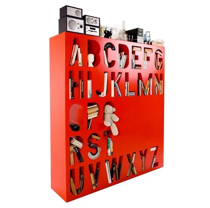 Буквы могут стать оригинальными полками для книг, ведь по своей природе эти двое не могут существовать друг без друга: буквы без книг, а книги — без букв.