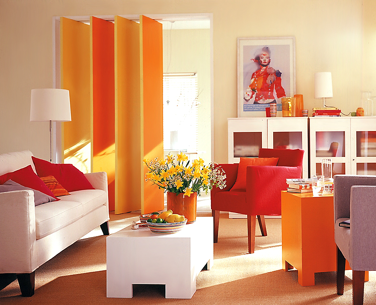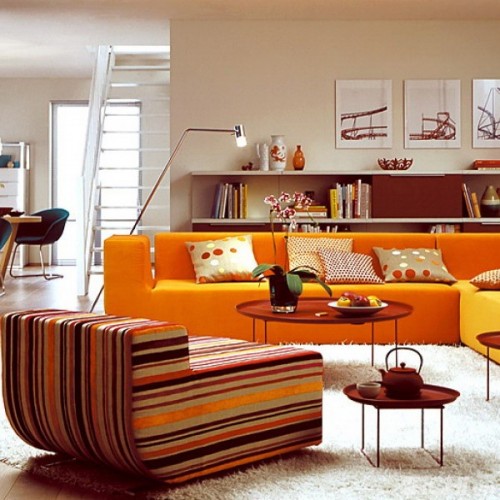 Но, пожалуй, самая оптимальная пара для яркого orange — это серый. Недаром его так любят использовать в монохромных интерьерах минимализма и хай-тека. Сложнее всего к оранжевому цвету относится классика, хотя точечные акценты будут уместны и там, особенно, если это классика современная. А вот в стиле поп-арт и в разнообразной этнике оранжевый цвет просто незаменим.
