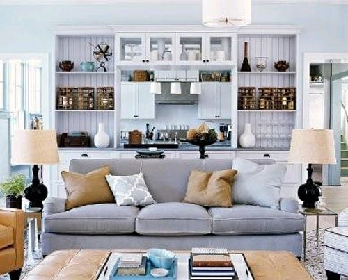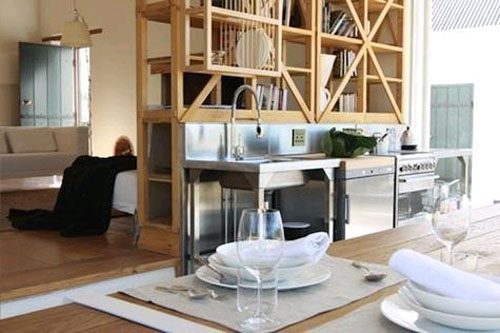 Поэтому наиболее полезным и практичным решением будут шкафы и различные стеллажи, которые визуально отделяют рабочую зону кухни от гостиной, а также предоставляют дополнительное пространство для хранения вещей или кухонной утвари. Но прежде чем решиться на установку шкафа или стойки, необходимо убедиться в его прочности и устойчивости, он не должен опрокинуться.