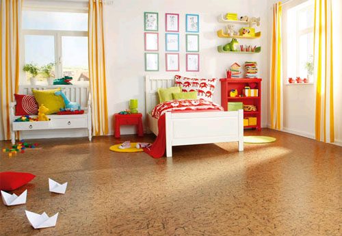 Пробковое покрытие для пола — это, прежде всего, комфорт и удобство; поэтому его часто стелют в детские комнаты. По пробке очень приятно ходить босиком, а учитывая ее амортизирующий эффект, для малыша это еще и полезно. При этом можно не беспокоиться о том, что пол будет холодным: пробка — отличный теплоизолятор. Она также приглушает звук шагов, так что малыш сможет позволить себе побегать и попрыгать, а соседи снизу не будут этим недовольны.