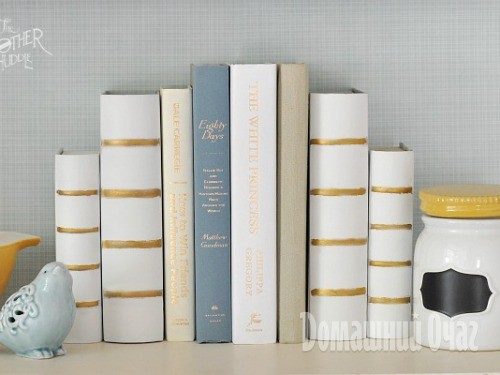 Если старым книгам сделать новые корешки, например, белые с золотыми полосками, и расставить их на полке среди обычных книг, ваша книжная коллекция будет выглядеть очень живописно. Такие роскошные корешки добавят теплоты всей комнате. Их можно сделать любого цвета, который поддерживает ваш интерьер.