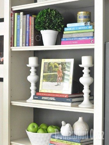 Наполненные книгами полки придают значительность любой комнате, а позолоченные обрезы книг добавят блеска вашему уголку. Для этого возьмите золотистую краску для бумаги и аккуратно покрасьте обрезы книг, не открывая их. Дайте высохнуть.