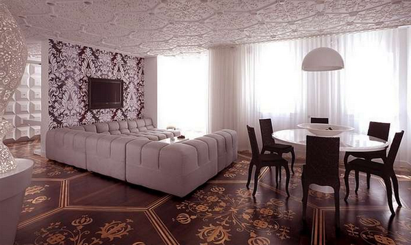 Секрет его популярности в том, что он одновременно придает интерьеру шик и делает его уютнее. Кроме того, он подходит буквально к любому интерьерному стилю, важно лишь со вкусом подобрать сам орнамент и место, где он будет смотреться наиболее выигрышно.